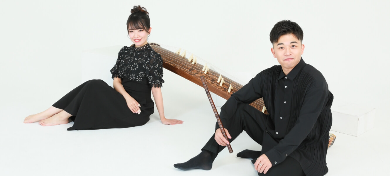 鼓童出身で笛奏者の小池と、藝大卒業で箏奏者の上田という違うルーツを持つ同い年による2人組ユニット。